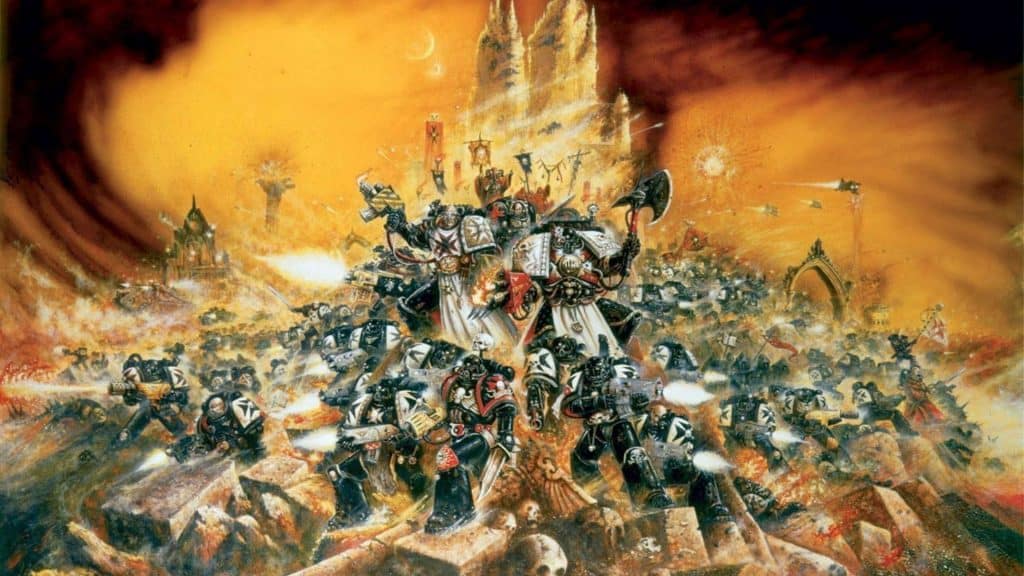 Les Black Templars m’intéressent depuis fort longtemps, j’ai été profondément marqué par la couverture de la V3 de Warhammer 40000 créée par John Blanche.