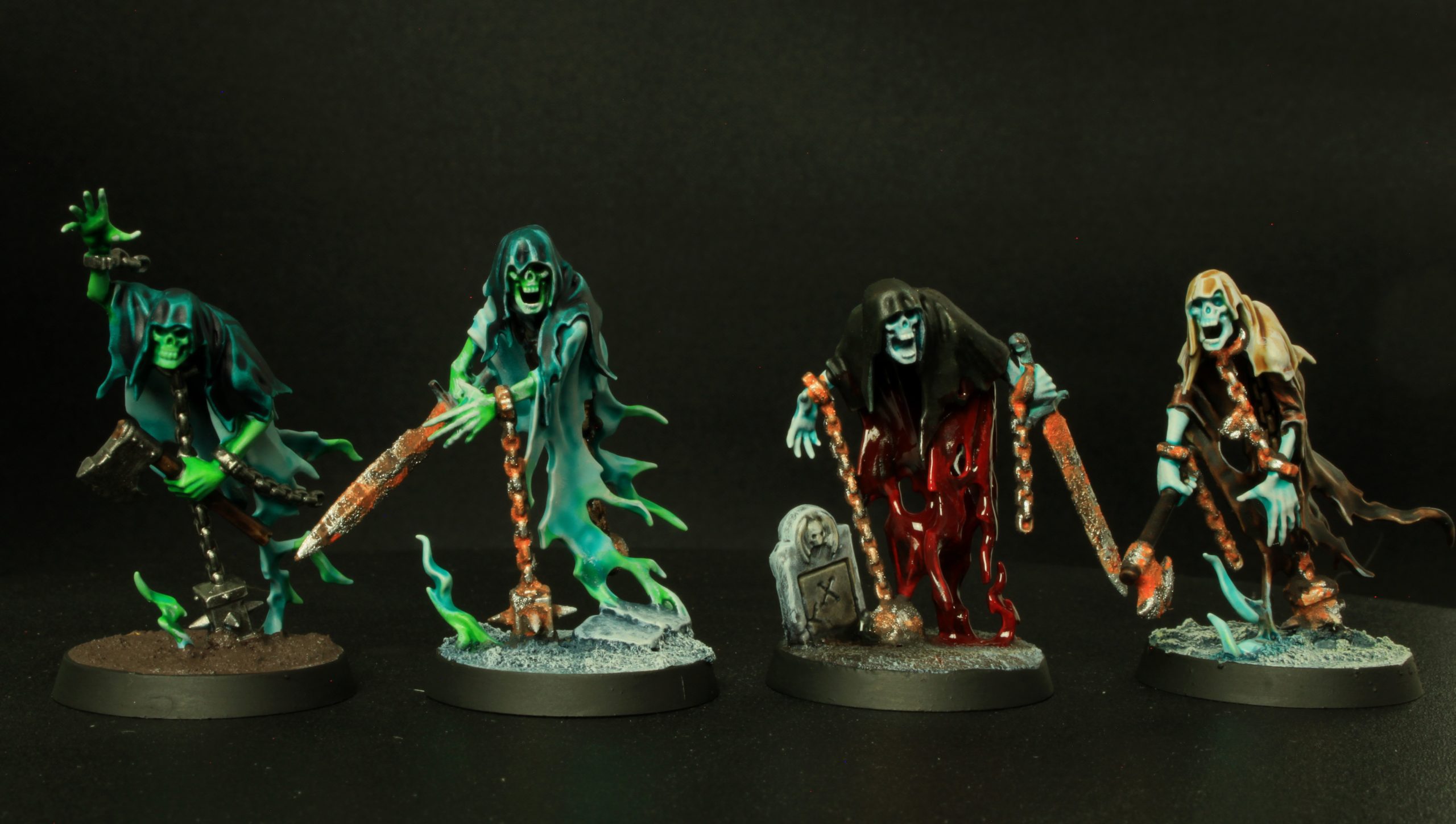 Cette armée Hantenuit a été pour moi l’occasion d’un défi personnel : (re)prendre en main l’aérographe. En effet, leur nature fantomatique se prête à merveille à l’exercice des fondus et des nuances du blanc au vert !