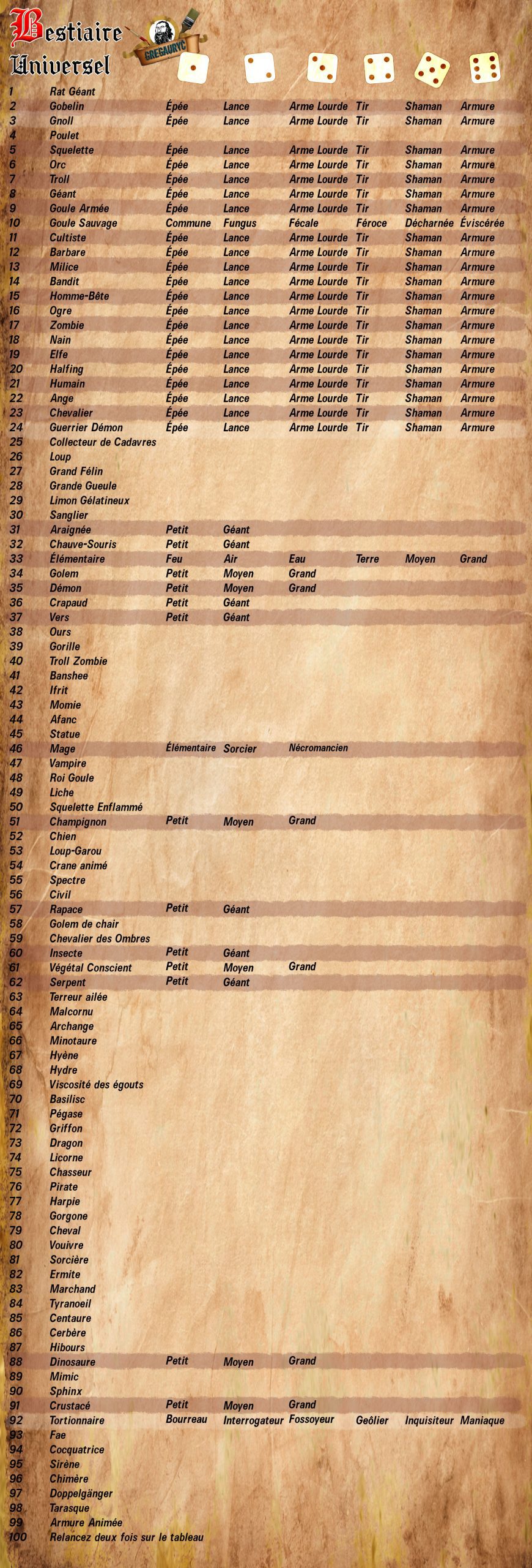 Si vous avez envie de participer à ce genre de défi, vous pouvez aussi simplement lancer les dés et voir ce que le tableau vous propose !