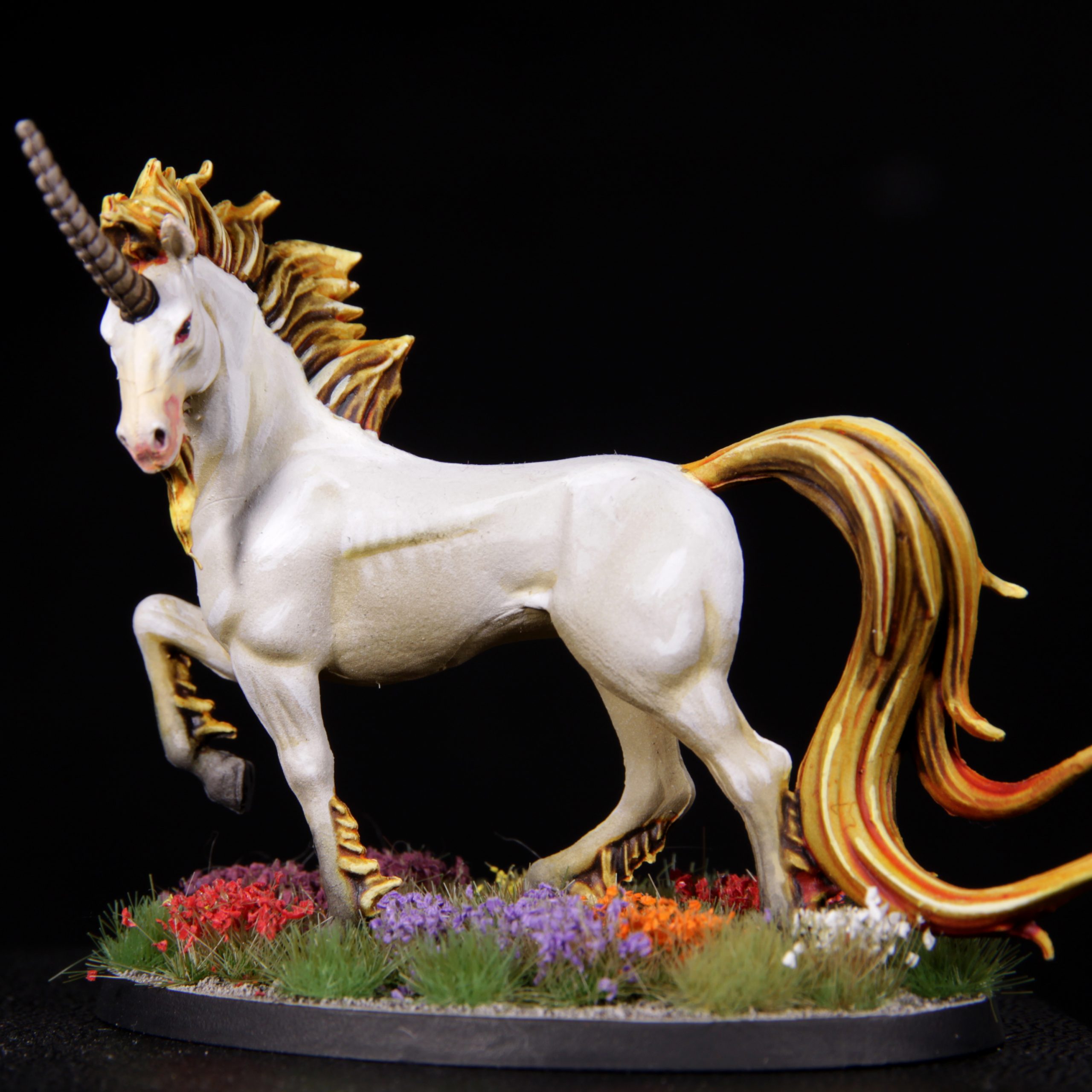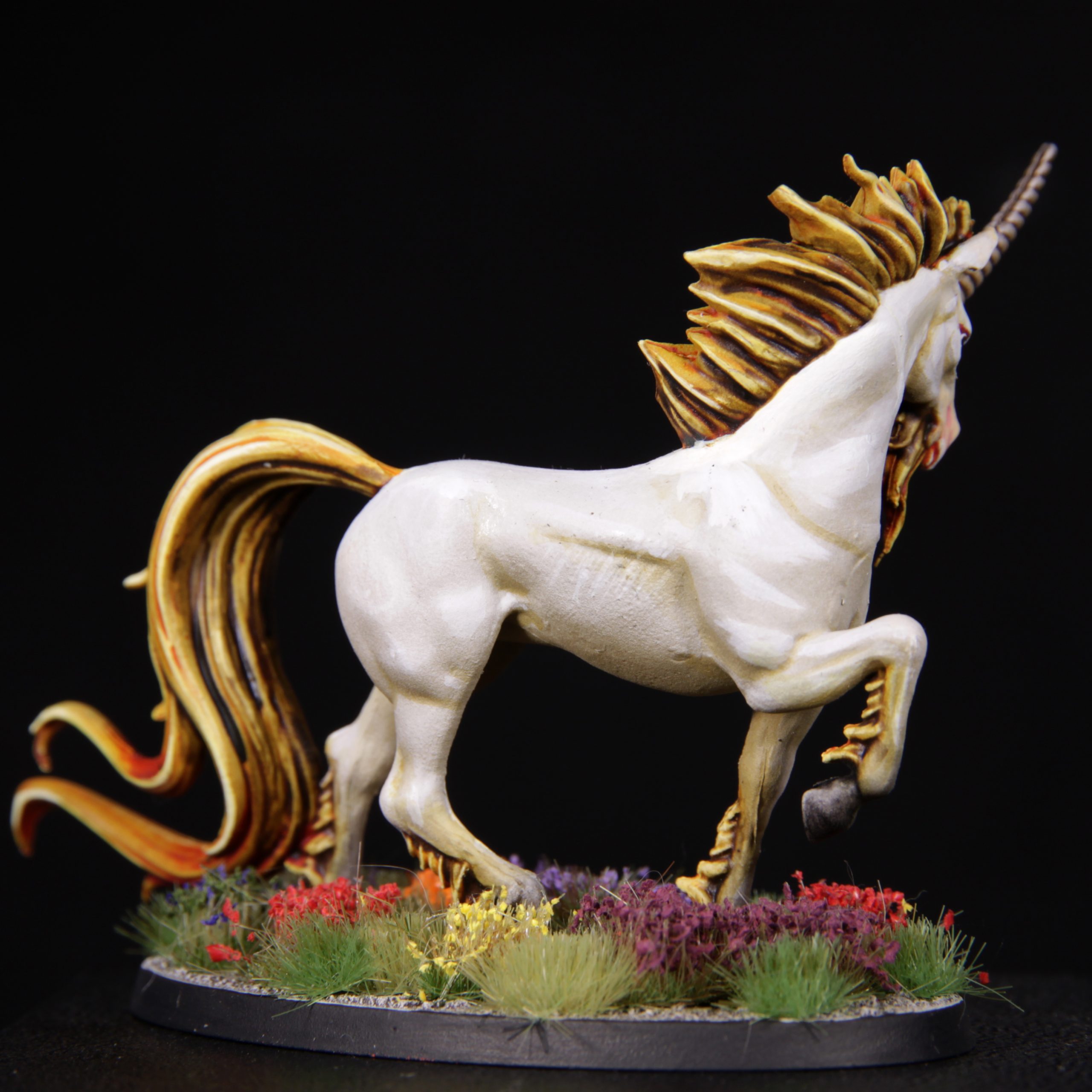 Pour le second lancer, je suis tombé sur une Licorne. Plusieurs choix s’offraient à moi, dont des licorne mignonne façon Petit Poney … J’ai préféré peindre une version “sérieuse” inspirée du film Legend.