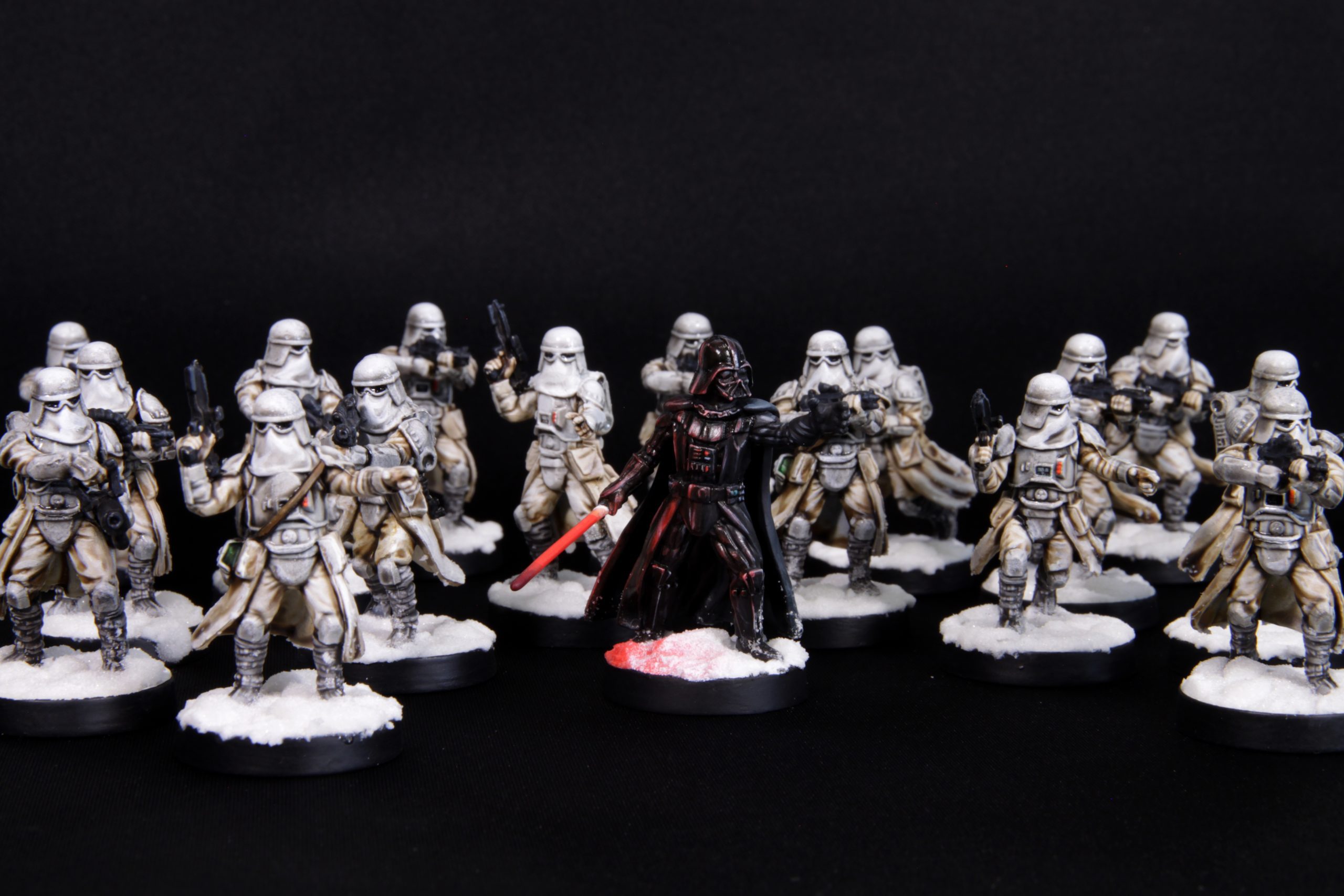 Chez l’Empire, on retrouvera toutes les variantes de Stormtrooper : Sandtrooper sur Dewback, Snowtrooper, Shoretrooper, Scouttrooper, Deathtrroper et Darktrooper sont au programme !  Choisissez parmi une vaste sélection de commandant, de Dark Vader à l’Empereur lui-même, en passant par Moff Gideon ou le Directeur Krennic ! L’Empire a aussi accès à un très large choix de chasseurs de primes.